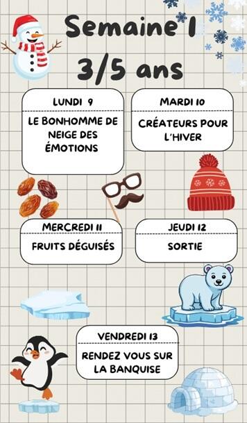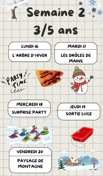 Les inscriptions au centre de loisirs pour les vacances de Février sont ouvertes du mardi 13 janvier au vendredi 30 janvier 2026.